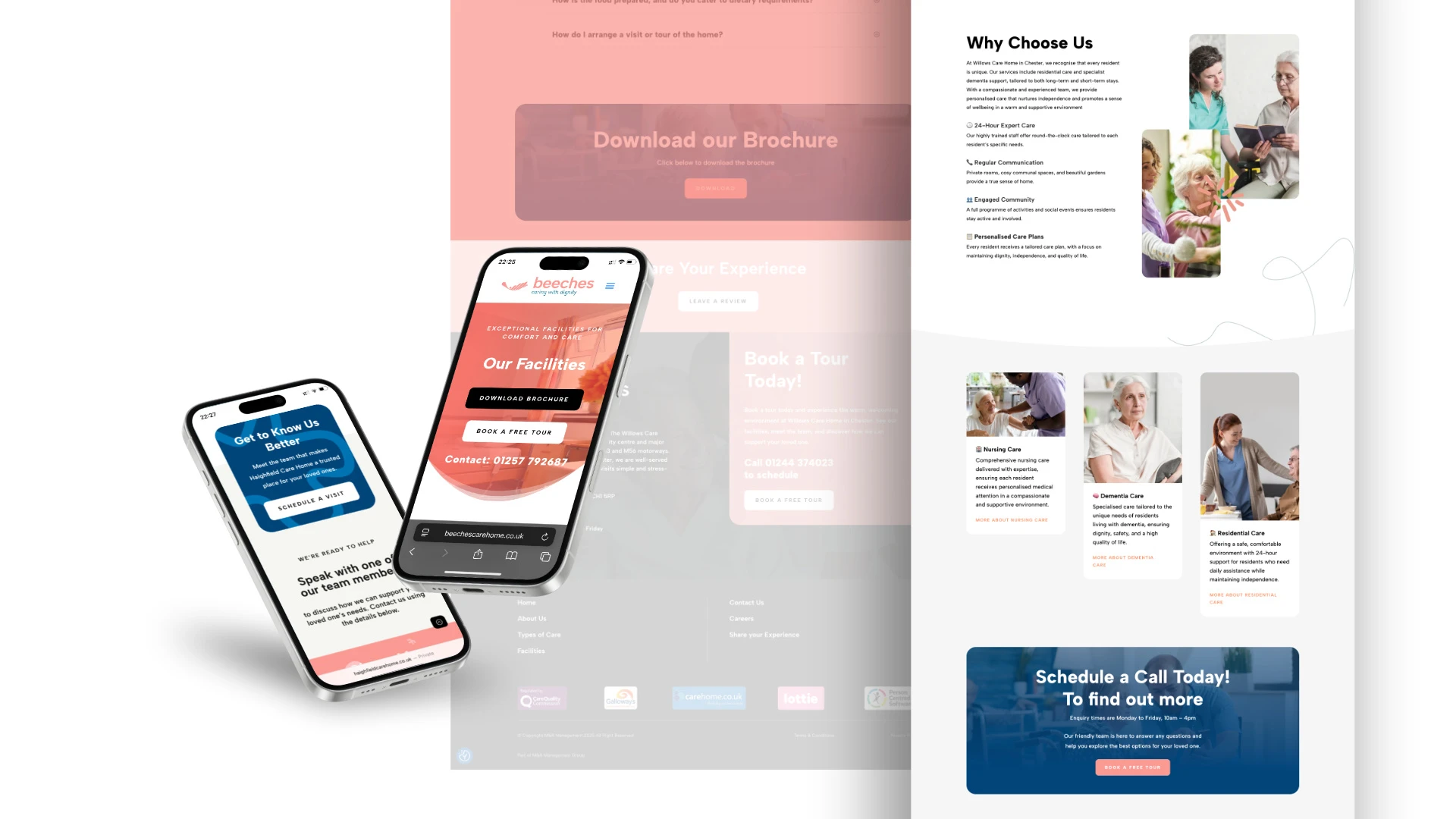 The finished websites are modern, easy to use and much more in line with the level of care the homes provide. They work well across all screen sizes and now act as a key part of the homes’ marketing. The combination of thoughtful design, improved layout and refreshed photography made a real difference. I will be sharing the logo rebrand on a separate project page, but this project was a great example of using design to change perception and improve engagement in a meaningful way.