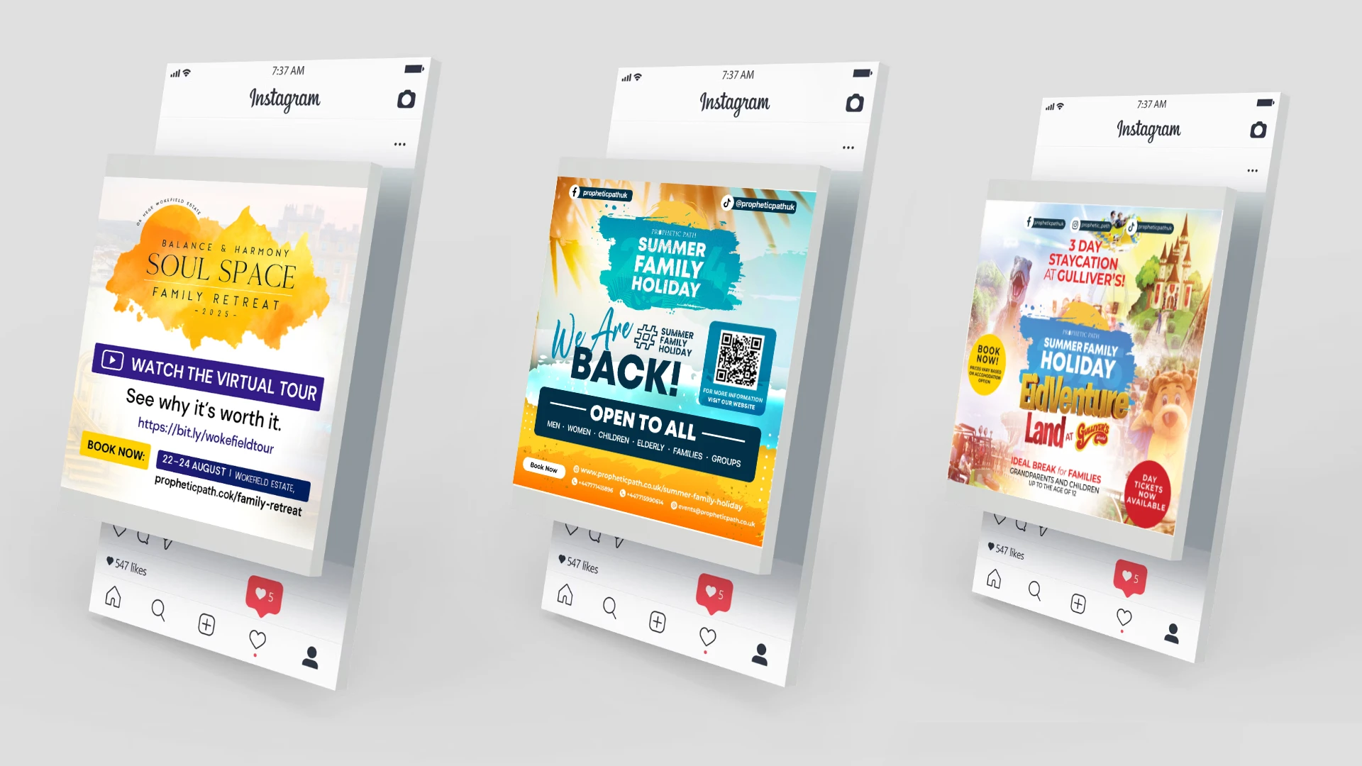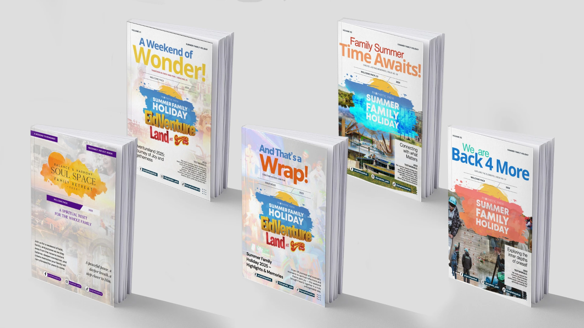 These campaigns showcase my ability to design and deliver multi channel marketing materials that work seamlessly together. By combining creative design with strategic thinking, I was able to create visually distinctive yet consistent campaigns that successfully promoted events, engaged audiences and strengthened brand presence. For Summer Family Holiday, this approach helped grow attendance from 200 in 2023 to 600 in 2025, with the event selling out each year and still attracting further registrations.
